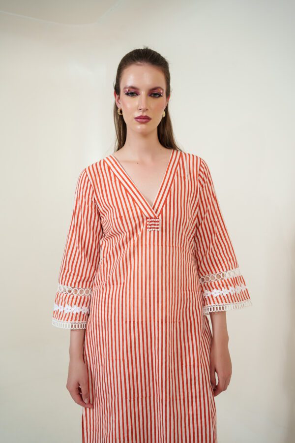 Our Berry Set embodies a delightful blend of style and comfort. This two-piece coord set features a bell-sleeved kurta with a chic neckline, paired with straight-flare pants for a flattering silhouette. Crafted from 100% cotton and handblock printed, this set is adorned with elegant cotton lace, making it a perfect choice for any occasion.